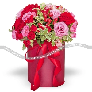 Нежность дня - шляпная коробка с розовыми кустовыми розами