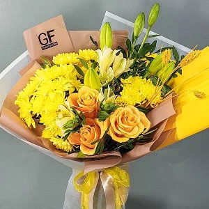 Виртуальная любовь - букет из белых лилий и альстромерии