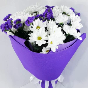 Доброе утро - букет из фиолетовых и желтых хризантем