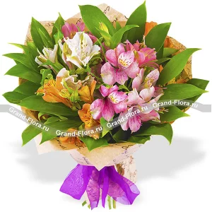 Любовь в моем сердце - букет из хризантем, эустом и роз