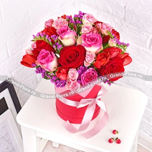 Сердце женщины - шляпная коробка с разноцветными тюльпанами