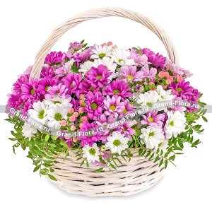 Цветочное счастье-корзинка из хризантем и кустовых роз