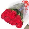 Роза красная 70 см - 7 шт, упаковка, лента. На фото представлен букет из 9 роз.