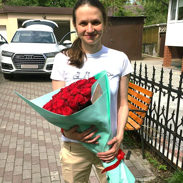 Не смог удержаться и не оставить отзыв! Букет шикарный, 51 роза выглядит очень солидно и дорого, розы крупные и длинные! Очень благодарен за доставку!