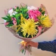 Очень яркий букетик, именно такой и искала. Спасибо флористам - отличная работа.