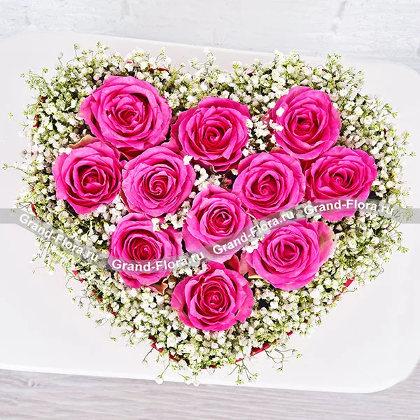 Вместо тысячи слов - композиция в виде сердца с розовыми розами
