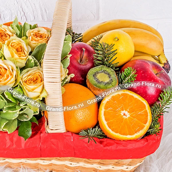 Серпантин - корзина с фруктами и кустовыми розами