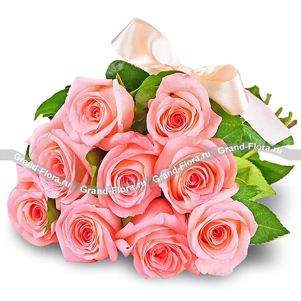 11 роз: роза розовая - 11шт., упаковка, лента.