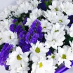 хризантема белая кустовая ромашковая - 7 ., статица - 3 шт., салал, фетр фиолетовый. Примерный размер: 25Х30 см. Данный букет представлен на фото