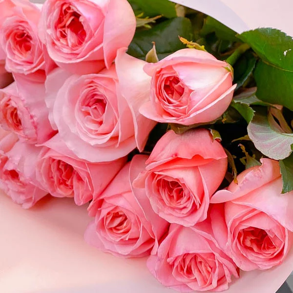 Этот букет из розовых роз – настоящее воплощение романтики и нежности. В нём собраны цветы с бархатистыми лепестками, окрашенными в мягкий оттенок розового, который напоминает рассветное небо или лёгкие облака.
