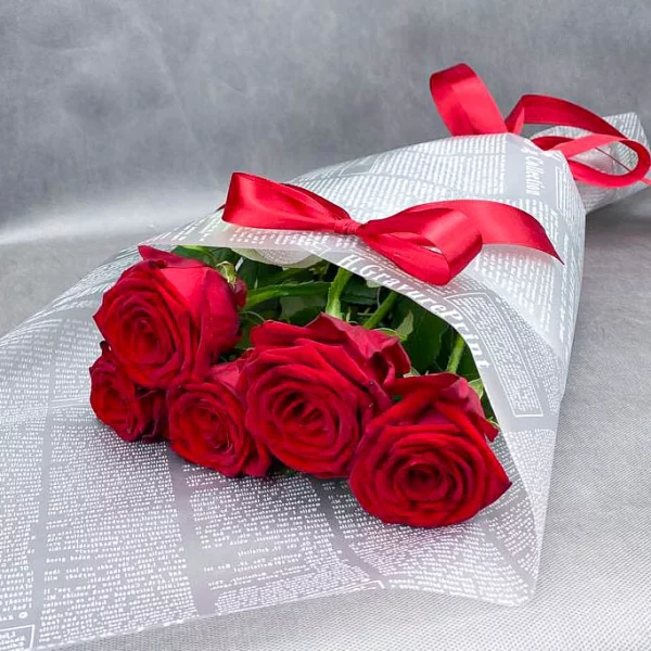 Роза красная 60 см (количество, выбранное Вами), упаковка - может отличаться от представленной на фото.